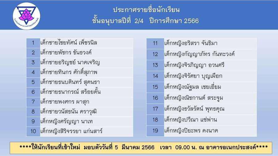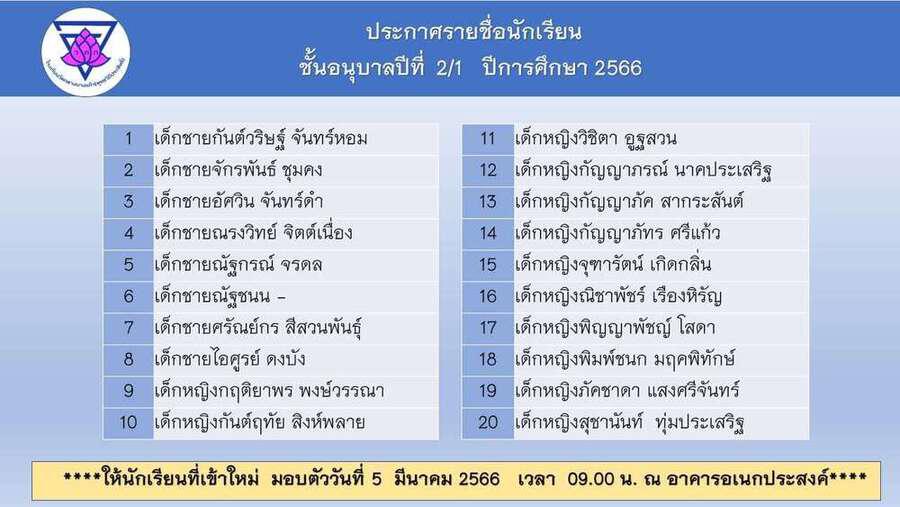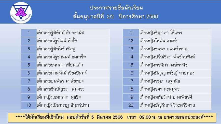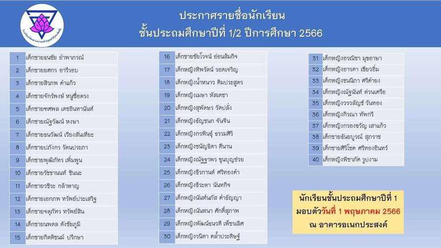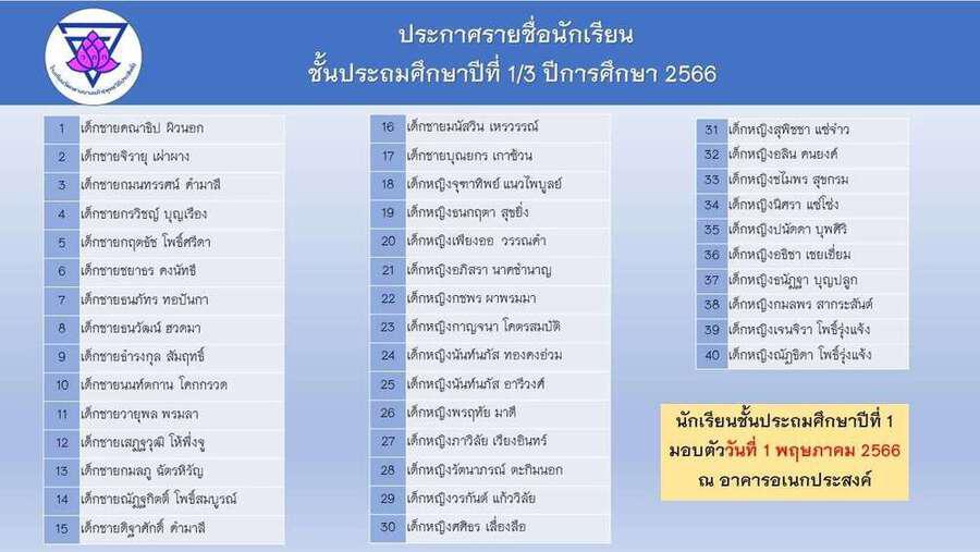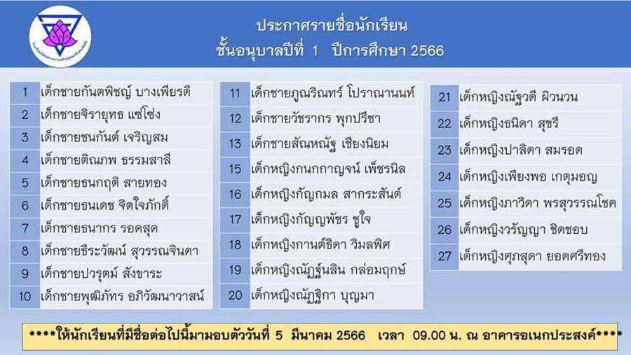 ประกาศโรงเรียนวัดกลางบางแก้ว รายชื่อนักเรียนผู้ได้รับการคัดเลือกศึกษาในระดับชั้นอนุบาล และประถมศึกษาปีที่ 1 S:0