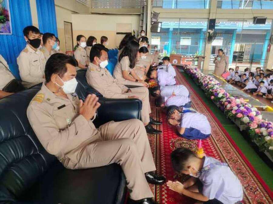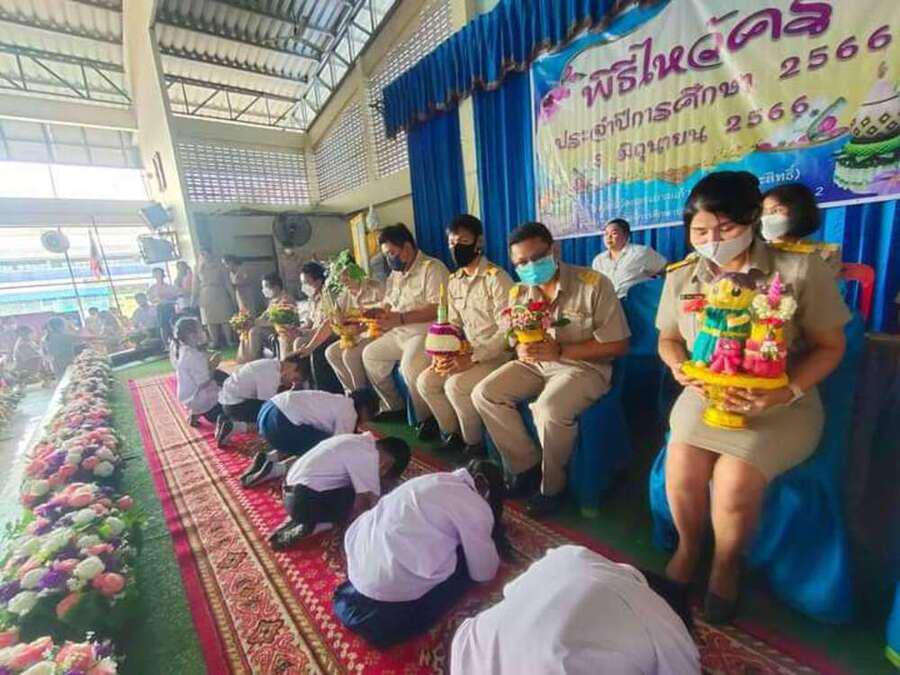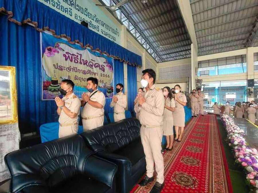 วันพฤหัสบดีที่ 8 มิถุนายน พ.ศ. 2566 โรงเรียนวัดกลางบางแก้ว(พุทธวิถีประสิทธิ์) ภายใต้การนำของนายสุรเชษฐ กลิ่นพยอม ผู้อำนวยการโรงเรียนวัดกลางบางแก้ว นายพงษ์เทพ อู๋หนู และนางประกายดาว บัลลังก์ปัทมา รองผู้อำนวยการ พร้อมคณะข้าราชการครูและบุคลากรทางการศึกษา และนักเรียนร่วมกันจัดกิจกรรมวันไหว้ครูประจำปีการศึกษา 2566 ณ. หอประชุมโรงเรียนวัดกลางบางแก้ว S:0