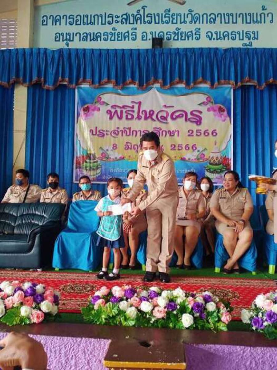 วันพฤหัสบดีที่ 8 มิถุนายน พ.ศ. 2566 โรงเรียนวัดกลางบางแก้ว(พุทธวิถีประสิทธิ์) ภายใต้การนำของนายสุรเชษฐ์ กลิ่นพยอม ผู้อำนวยการโรงเรียน นายพงษ์เทพ อู๋หนู และนางประกายดาว บัลลังก์ปัทมา รองผู้อำนวยการโรงเรียนวัดกลางบางแก้ว มอบทุนการศึกษา ให้กับนักเรียนโรงเรียนวักลางบางแก้ว เนื่องในวันไหว้ครู ตั้งแต่ระดับชั้นอนุบาล 1 - ประถมศึกษาปีที่ 6 และมอบรางวัลทุนการศึกษาพิเศษให้กับเด็กชายณัฐวัฒน์ อินทร์กองทรัพย์ นักเรียนชั้นปรุะถมศึกษาปีที่ 4 นักกีฬาเทควันโด ณ.หอประชุมโรงเรียนวัดกลางบางแก้ว S:0