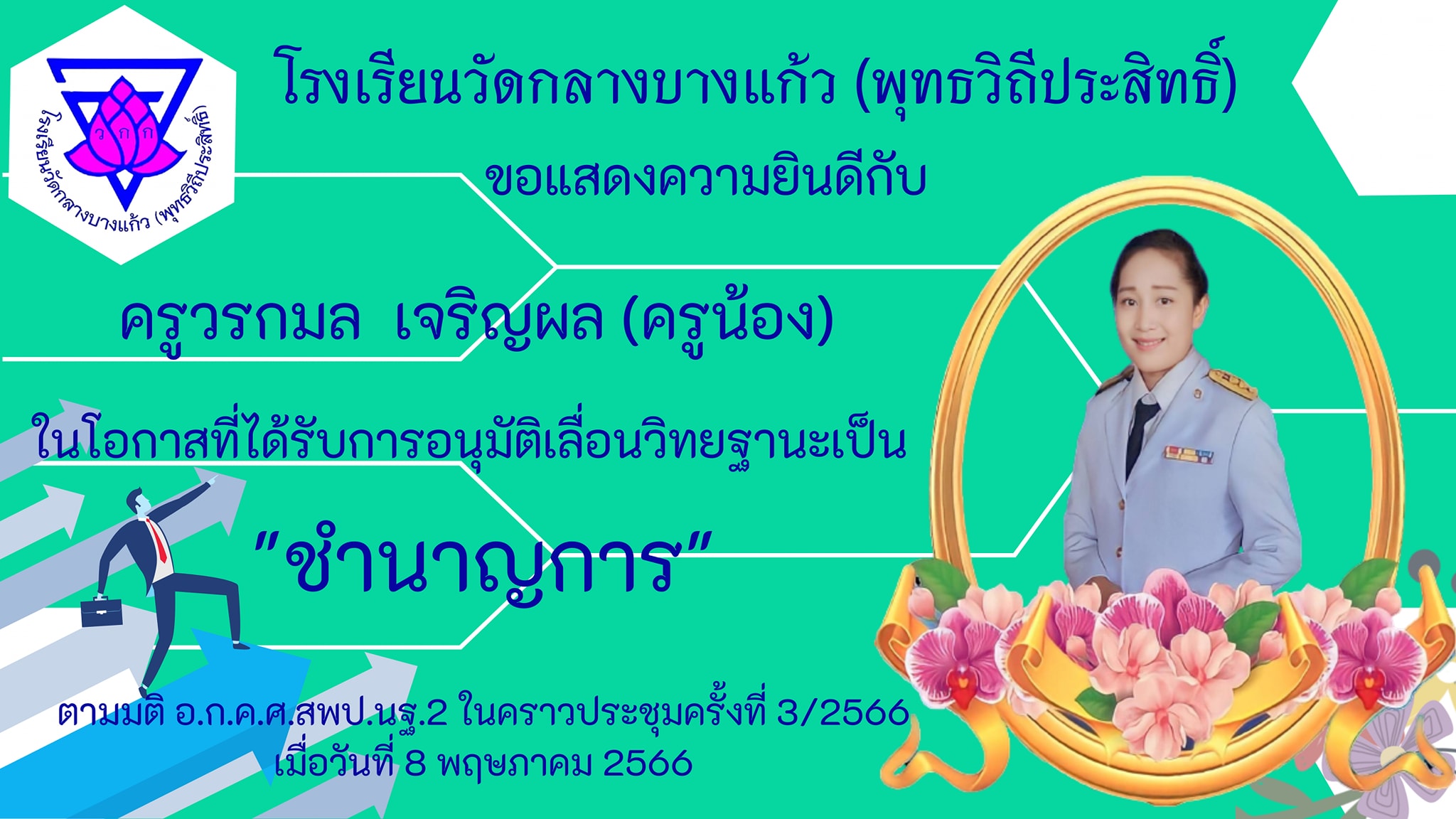 แสดงความยินดีการเลื่อนวิทยฐานะครูวรกมล เจริญผล
