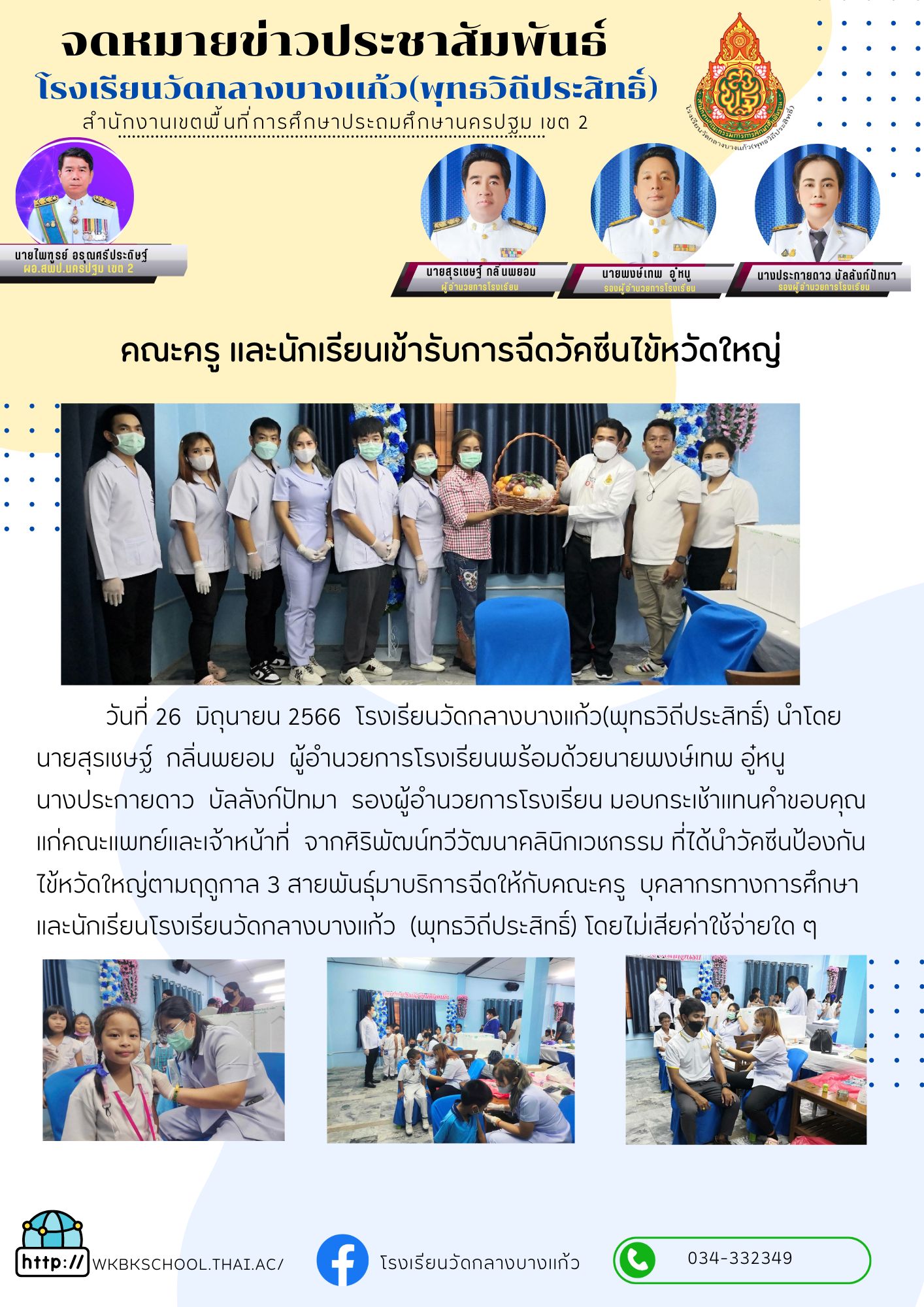 คณะครูและนักเรียนเข้ารับการฉีกวัคซีนไข้หวัดใหญ่
