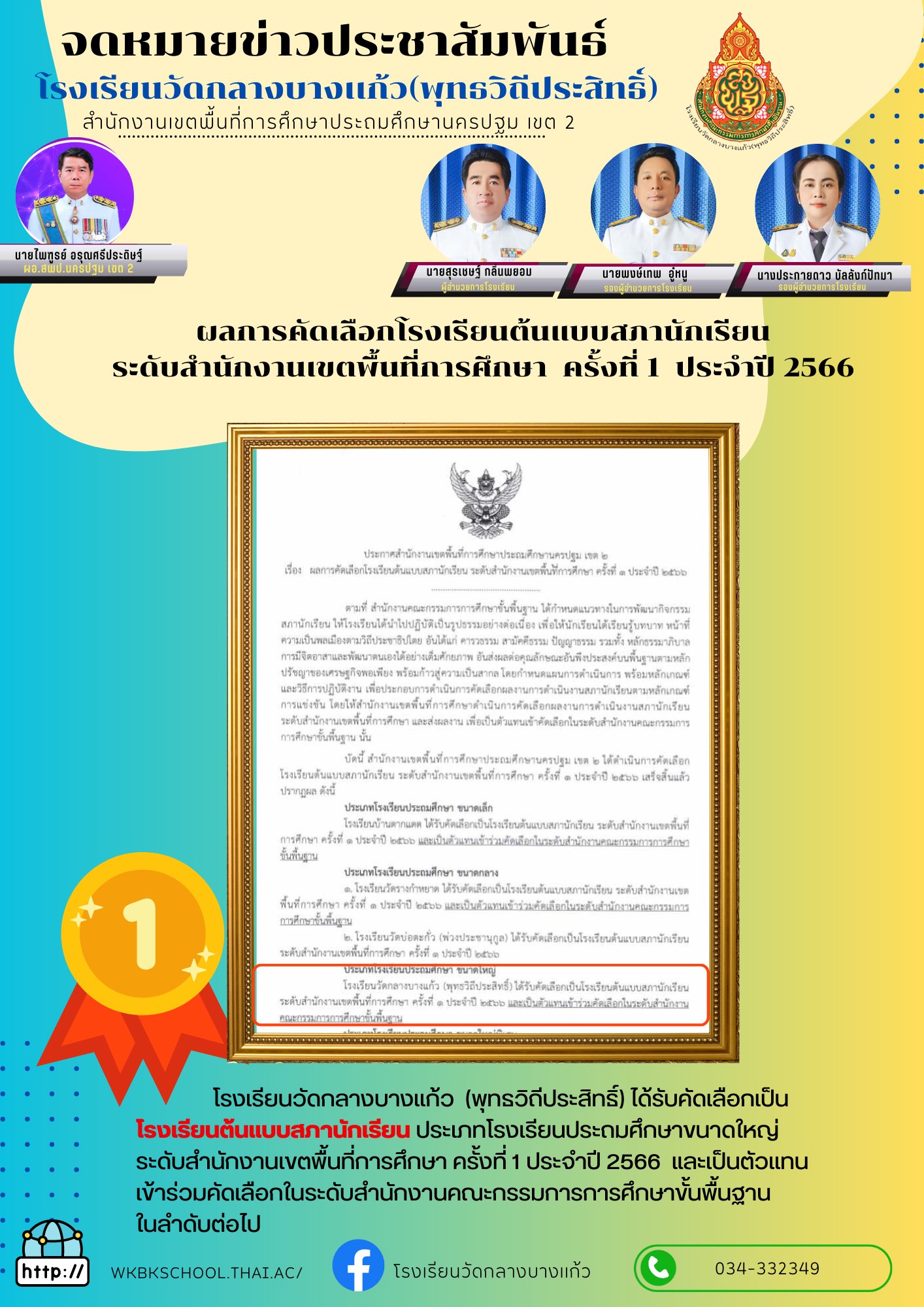 ผลการคัดเลือกโรงเรียนต้นแบบสภานักเรียน