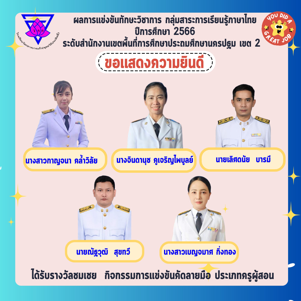 ผลการแข่งขันทักษะวิชาการ กลุ่มสาระการเรียนรู้ภาษาไทย